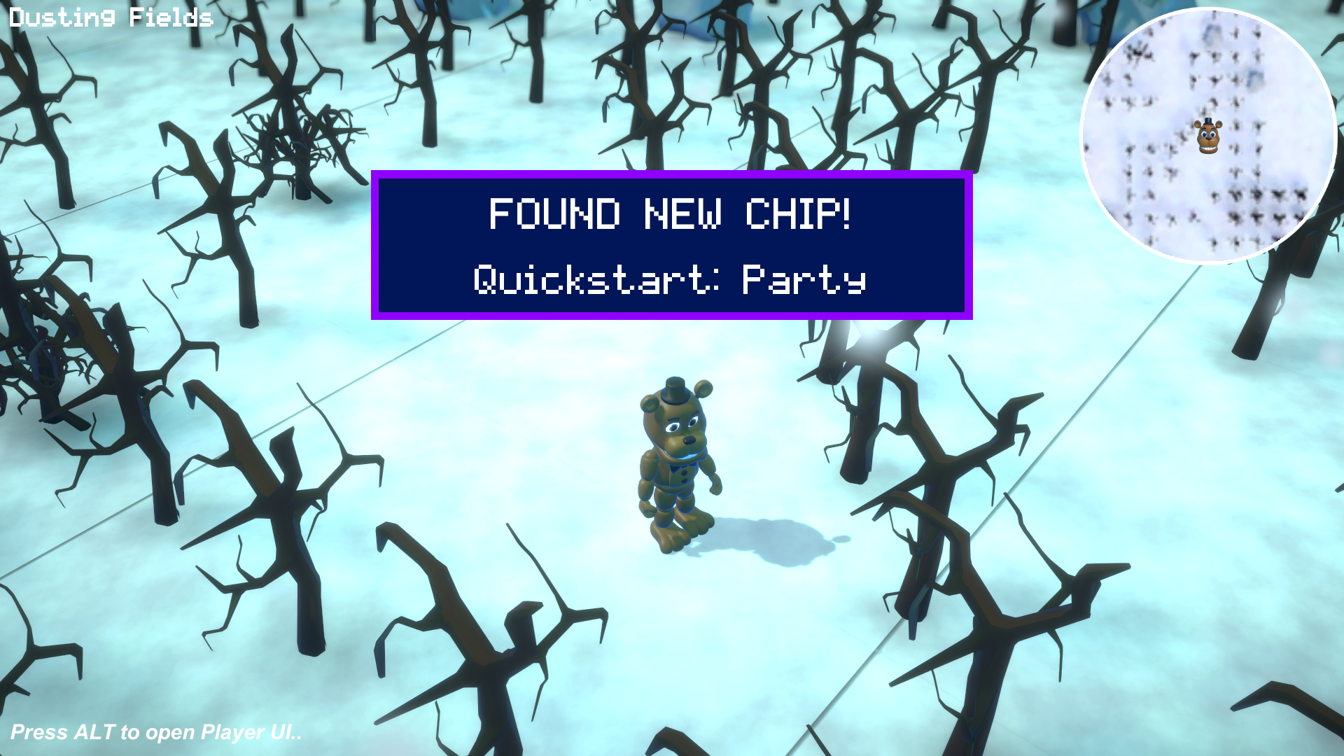 You can walk around the entire world and fight against enemies, even against animatronics that you can posses in your party. You also have the ability to collect chests that contains chips to help you fight and also buy bytes in the shops to assist you. The world is filled with secret places and areas that are meant to found by you! Fredbear will help you guide through your journey.
